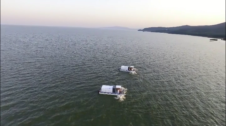公司研發的加壓控藻船,以玻璃鋼船體為平臺,配置藍藻打撈、壓力控藻和曝氣裝置,可機動靈活地在藍藻水華暴發水域實施有效的應急處置,控制藍藻聚集、防止其發白發臭。可廣泛用于湖泊、水庫、河道、魚塘以及景觀水體等水域藍藻水華的防控。