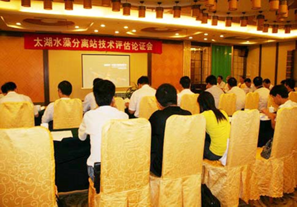 2008年8月29日上午,由江蘇省發(fā)改委和省水利廳共同組織的“太湖水藻分離站技術(shù)評(píng)估論證會(huì)”在錫召開。省發(fā)改委齊乃昌巡視員、省水利廳陸桂華副廳長(zhǎng),市政府陳金虎副市長(zhǎng)出席會(huì)議并講話。參加會(huì)議的有省財(cái)政廳、省農(nóng)林廳、中船重工702研究所、中科院南京地理與湖泊研究所、省農(nóng)科院、省工程咨詢中心、河海大學(xué)等專家和代表。 張海泉副局長(zhǎng)陪同現(xiàn)場(chǎng)察看并參加了論證會(huì)。