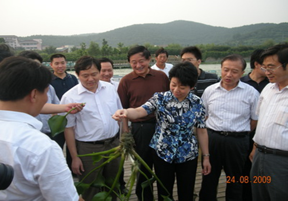 2009年8月24日,省委常委、副省長黃莉新來到無錫市楊灣藻水分離站,省水利廳副廳長陸桂華陪同檢查。無錫市水利局負責同志、廳水資源處負責同志陪同檢查。實地檢查藻水分離工程運行,并聽取有關情況匯報。