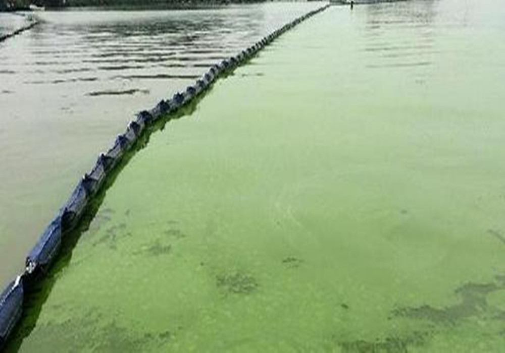 以上三張圖非常直觀的說明了在過去。藍藻的打撈一直是個大問題。那么如今科技飛速發展,藍藻治理技術已經升級為一種完善的技術體系。首先從藍藻的區域分割來看:以前分割的方法都是用泥建壩這會導致什么問題。第一:壩的高度和水位的高度不一致。第二:工程性質耗時大。那么現在我們用什么來分割的呢?看以下圖片: