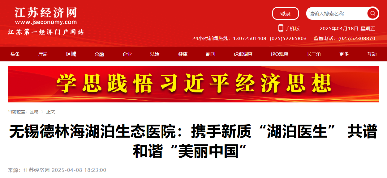 江蘇經濟網:無錫德林海湖泊生態醫院:攜手新質“湖泊醫生” 共譜和諧“美麗中國”